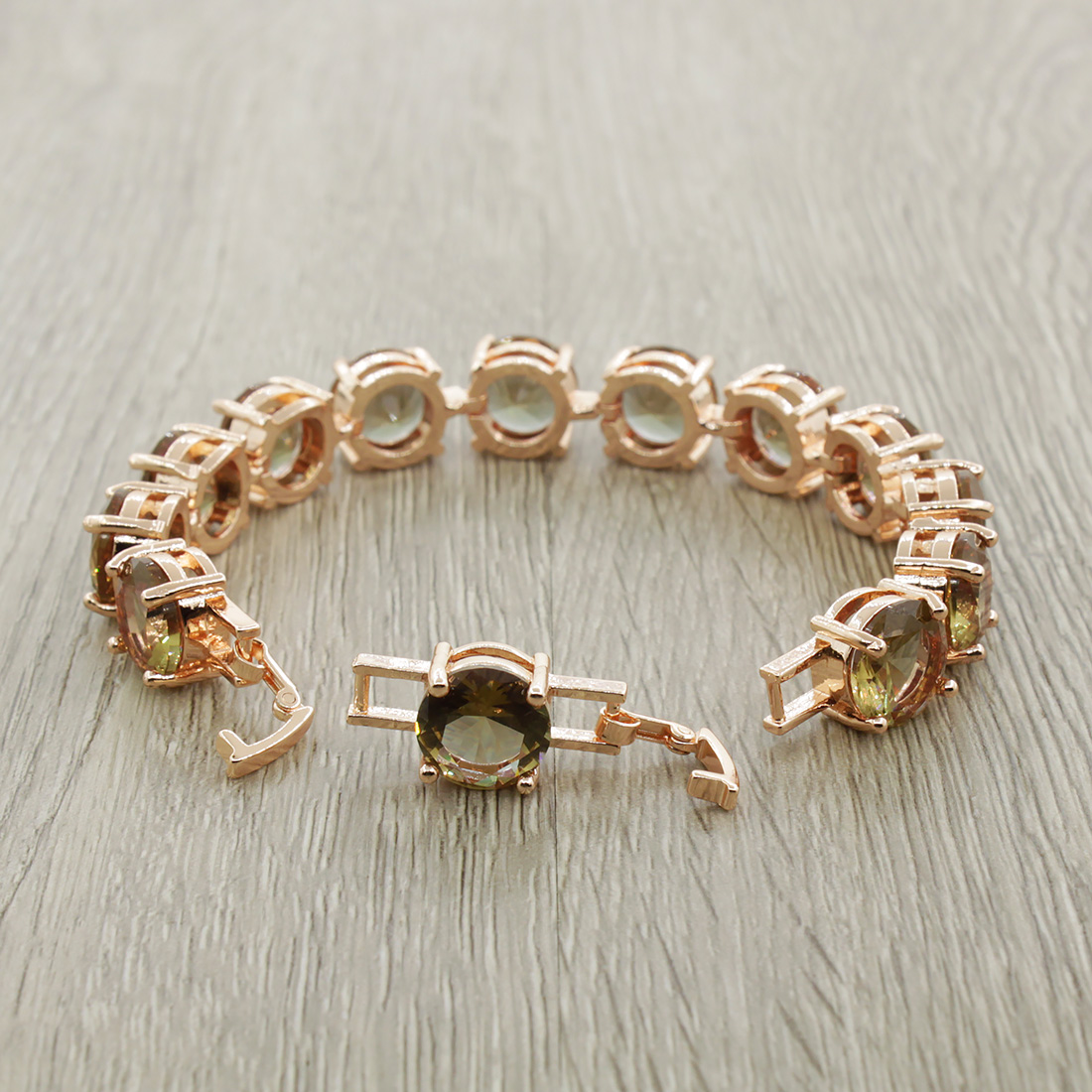 Стильный браслет с султанитами, меняющими цвет, и качественным покрытием. Длина браслета 16,5см, с дополнительным звеном 18,5см. Размер вставок из султанита 10мм