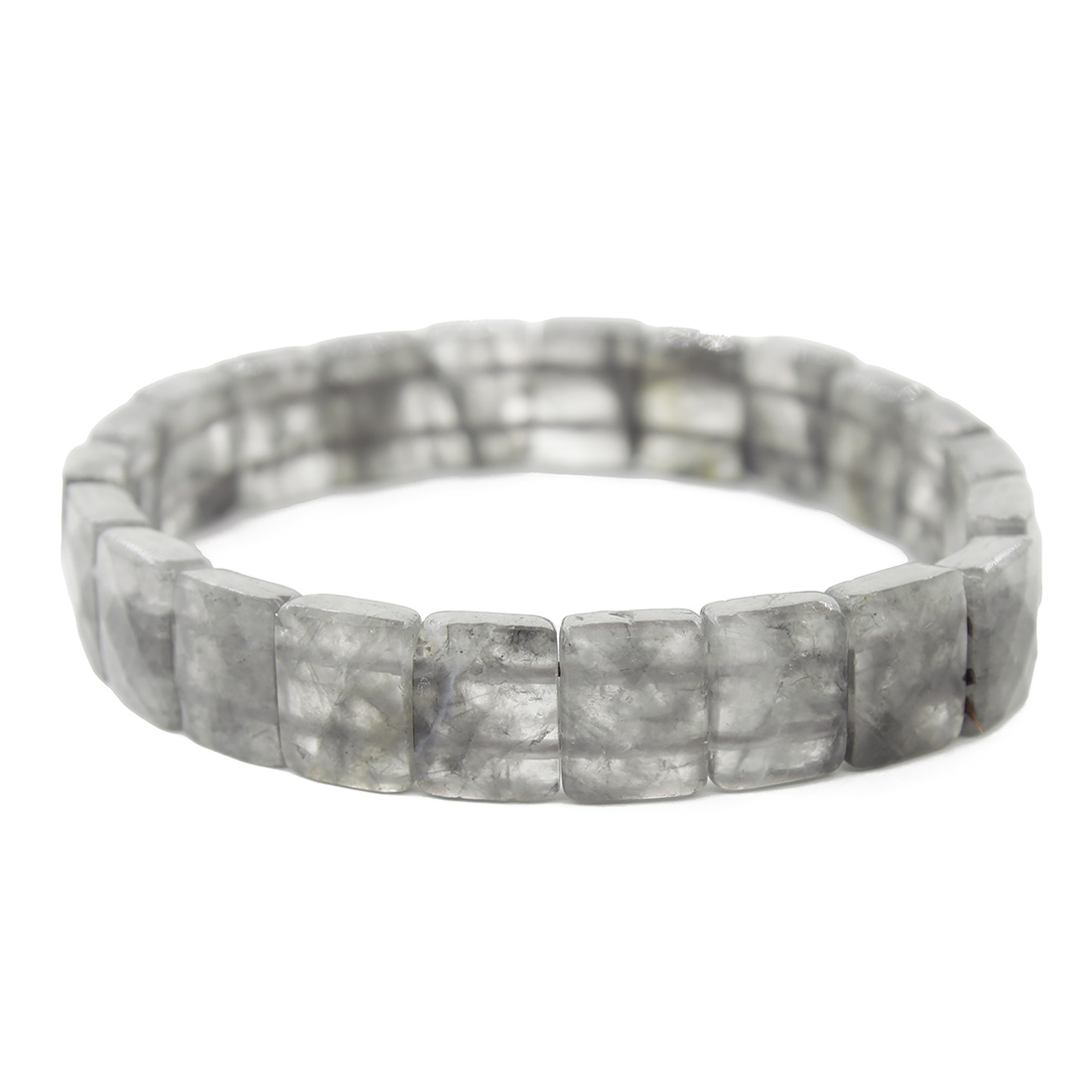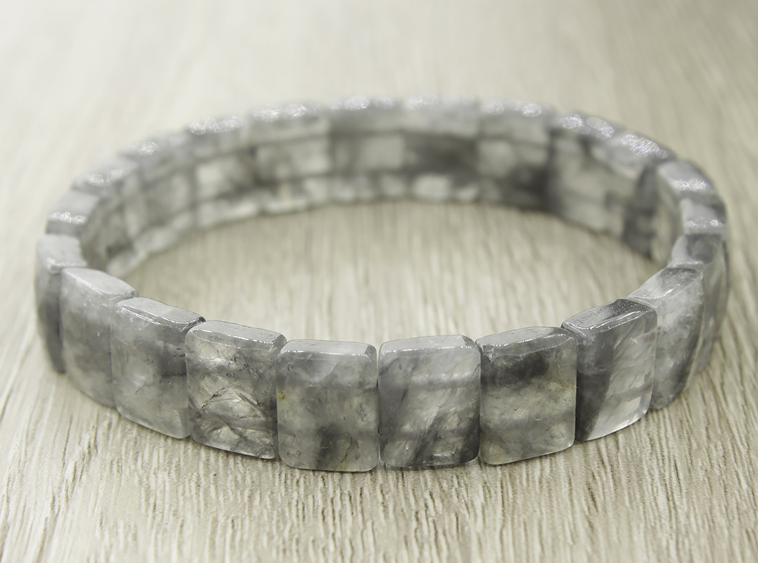 Волосатик (рутиловый кварц) серый 12мм, браслет "Квадро" 20см