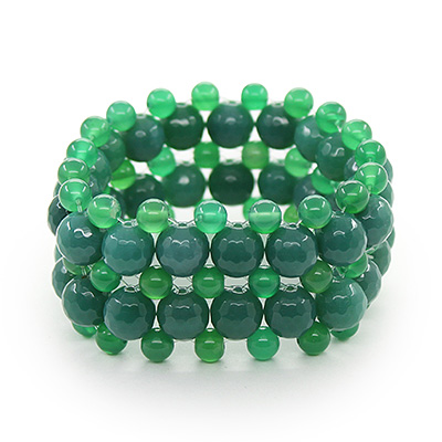 Роскошный браслет из хризопраза высокого качества. Для придания особого шарма в браслете используются шарики разного размера и обработки. Диаметр граненых бусин составляет 8мм и 10мм, гладких - 6мм. Длина изделия 18см.
