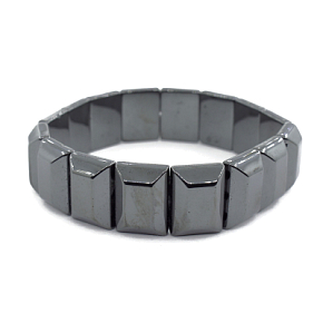 Браслет из натурального гематита на резинке. Рисунок на браслете в виде прямоугольников. Ширина браслета 17мм. Длина 19см.
