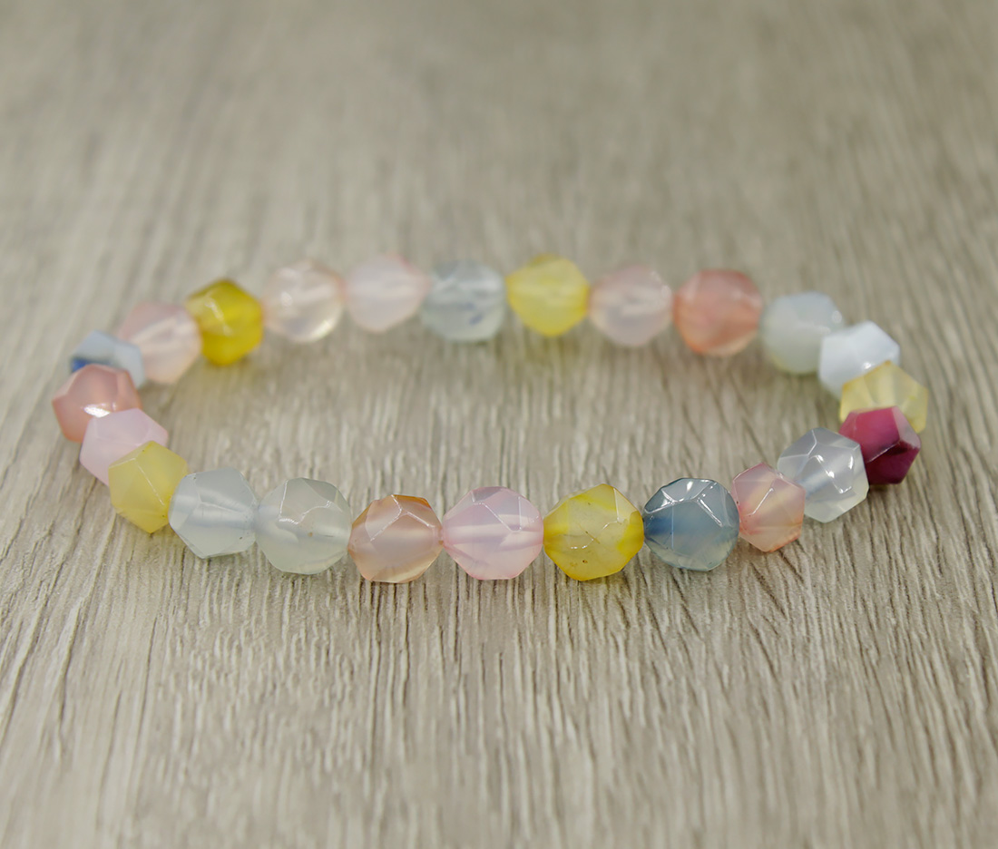 Браслет "Валькирия" агат розово-голубой-желтый 7мм