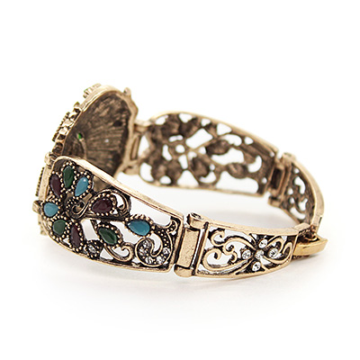Этот яркий браслет выполнен в восточном стиле и украшен декоративными вставками цвета "самоцветы". Длина браслета 18см.