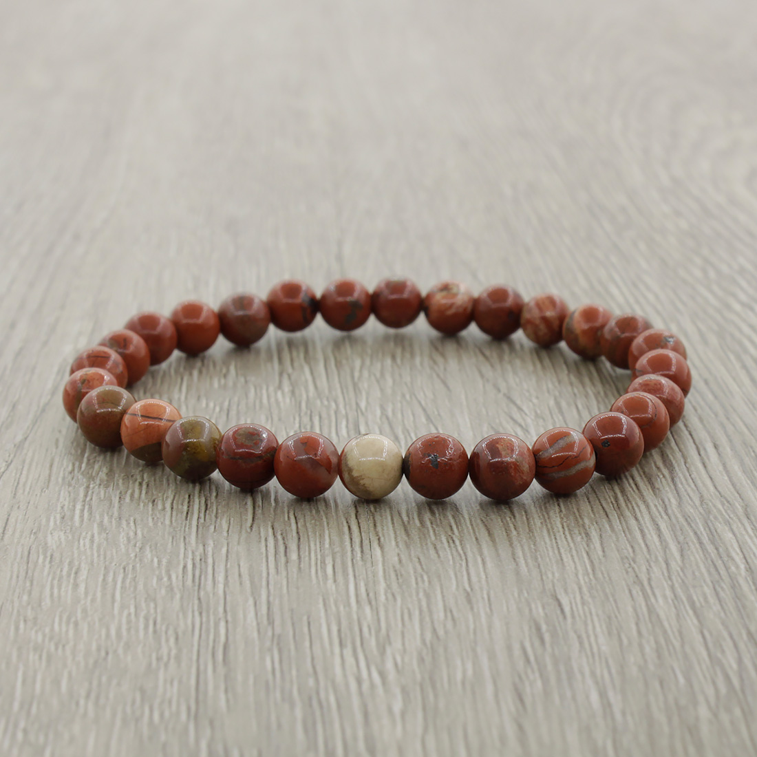 Яшма красная с бежевым 6мм, браслет "Классика" длина 17см