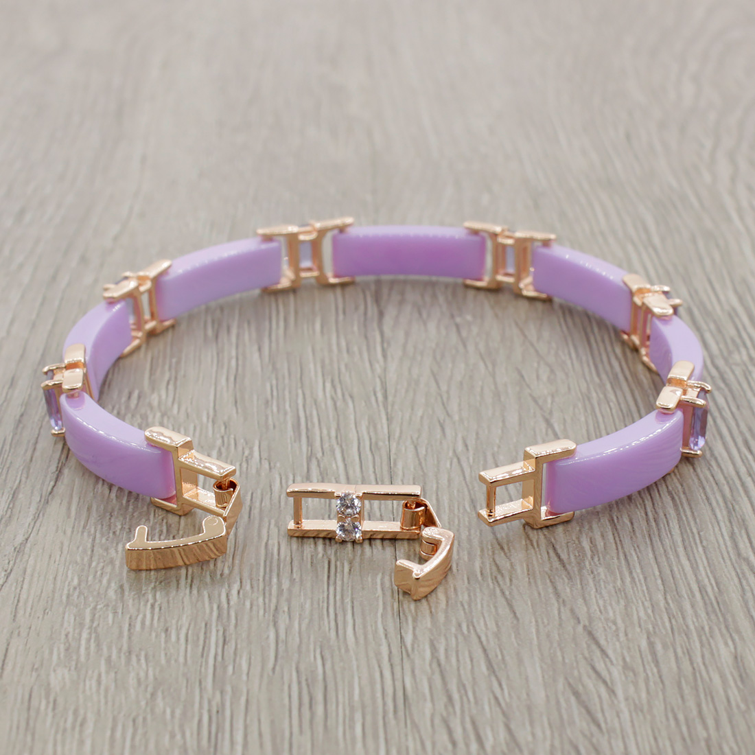 Браслет "Лилу" из фиолетовой керамики с Александритом покрытие под золото, длина 20см