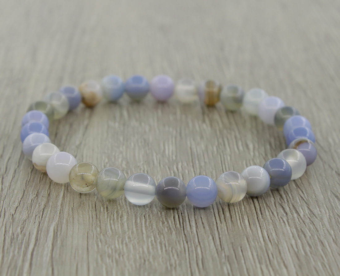 Этот браслет сделан из шариков натурального агата. Браслет на резинке. Диаметр шарика 6мм. Длина браслета 17см.