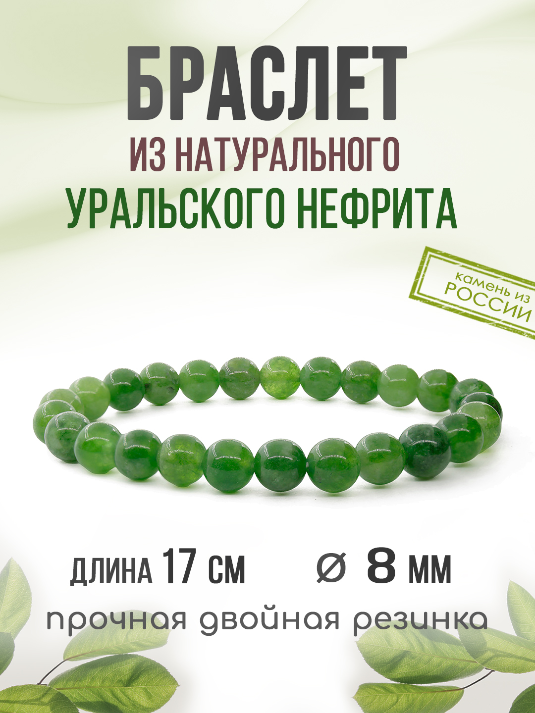 Нефрит (Урал) 8мм, браслет "Классика" длиной 17см