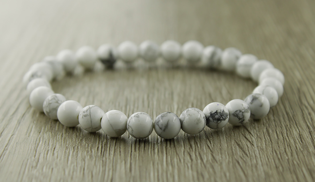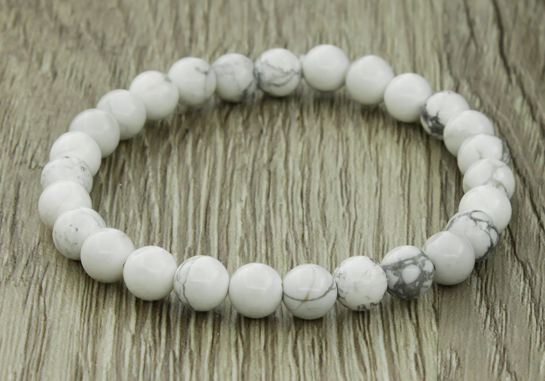 Кахолонг белый 6мм, браслет "Классика" длина 17см