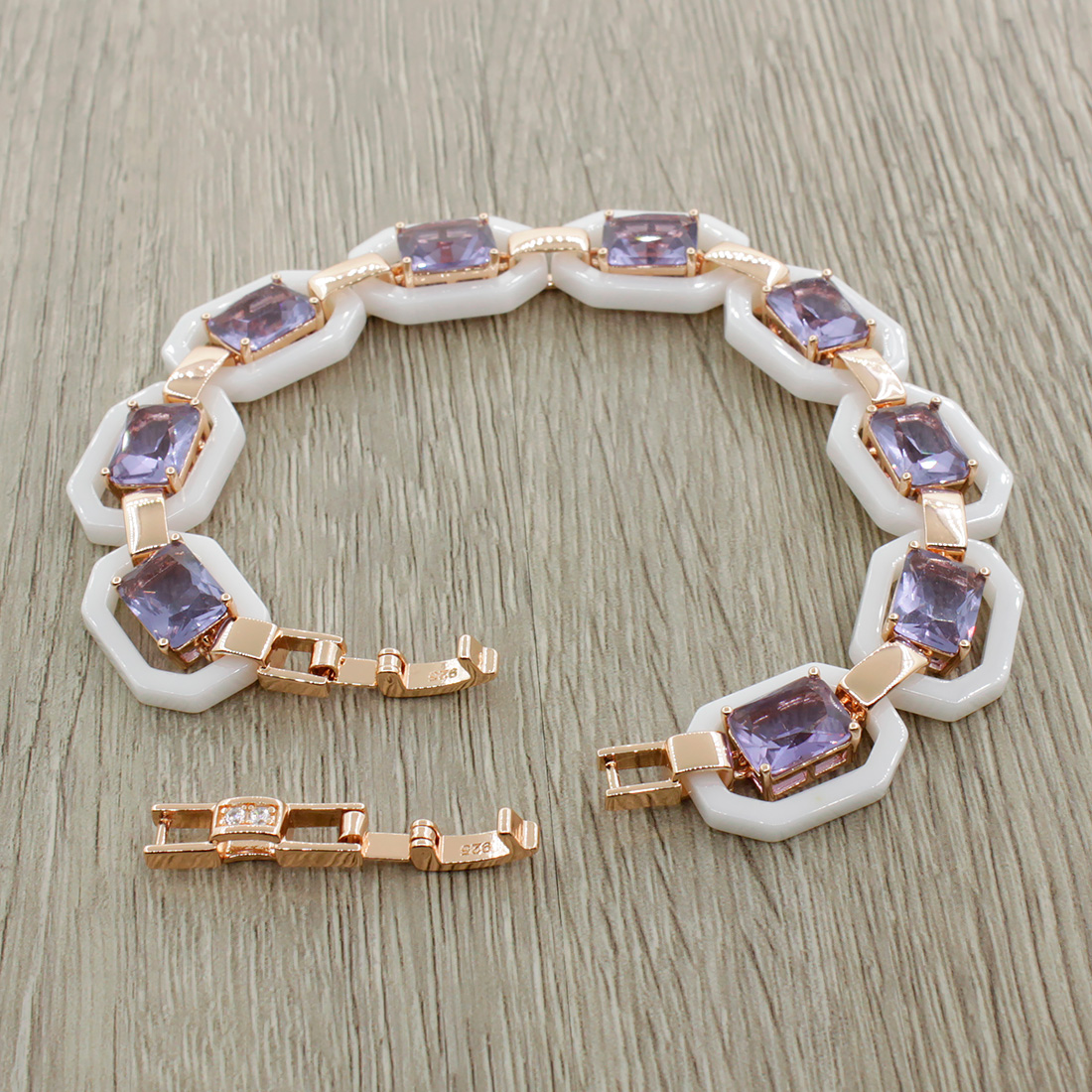 Браслет "Октагон" из белой керамики с Александритом покрытие под золото, длина 18см