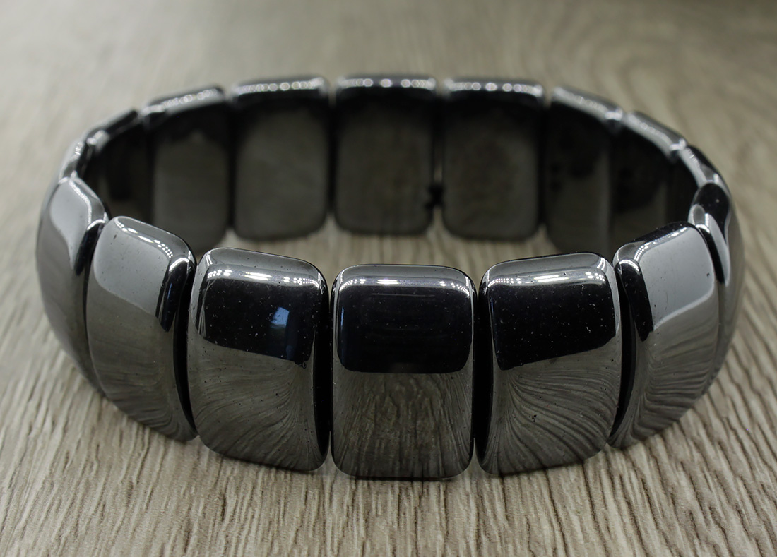 Данная модель выполнена из натурального гематита. Размер камня 12х20мм. Длина браслета 19см.