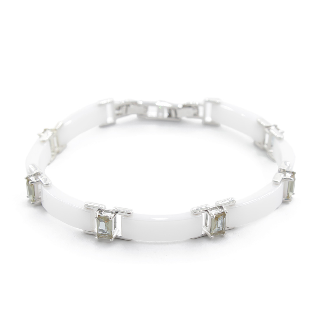 Браслет "Лилу" из белой керамики с Султанитом покрытие светлый металл, длина 20см