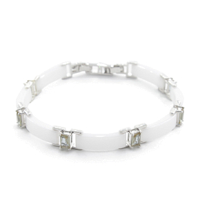 Браслет из натуральной керамики со вставками Султанита. Звенья соединяются с помощью вставок из ювелирного сплава "под серебро" и имеет дополнительное съемное звено. Длина изделия 20см, с дополнительным звеном 22см. Размер звена 20х6мм. Размер вставки Султанита 6х4мм.