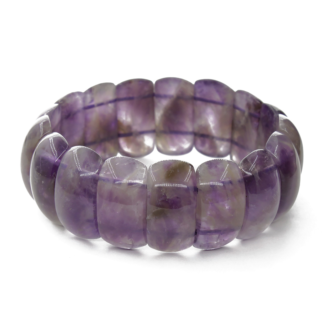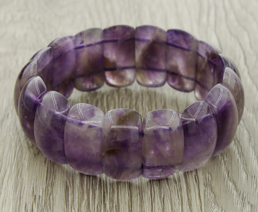 Изысканный браслет из натурального аметиста. Бусины нанизаны на плотную резинку, сочетая в себе всю палитру этого удивительного камня. Ширина браслета 25мм. Длина 19см.