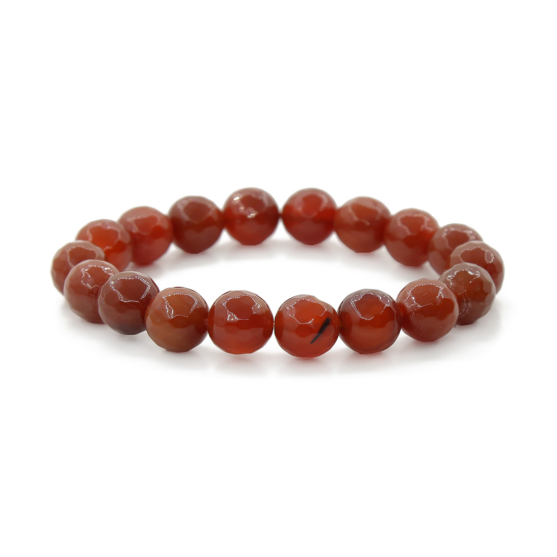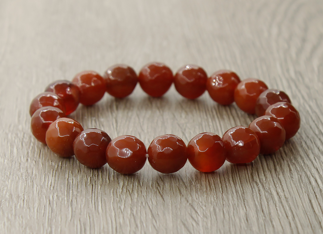 Этот браслет сделан из гранёных шариков сердолика. Браслет на резинке. Диаметр бусины 10мм. Длина браслета 15см.