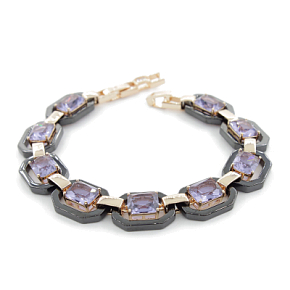Браслет "Октагон" из черной керамики с Александритом покрытие под золото, длина 18см