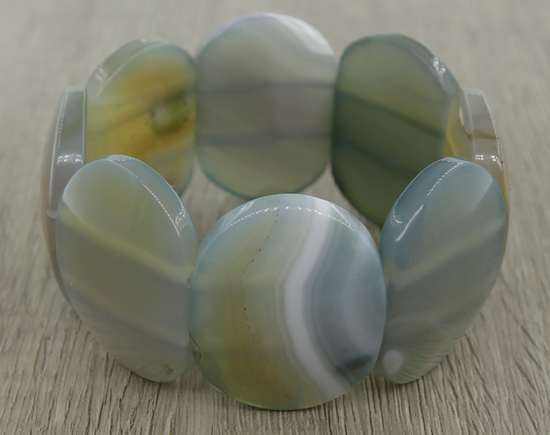 Браслет на резинке из крупного натурального агата - роскошное украшение для роскошных женщин. Длина браслета 21см, бусины 28х38мм.