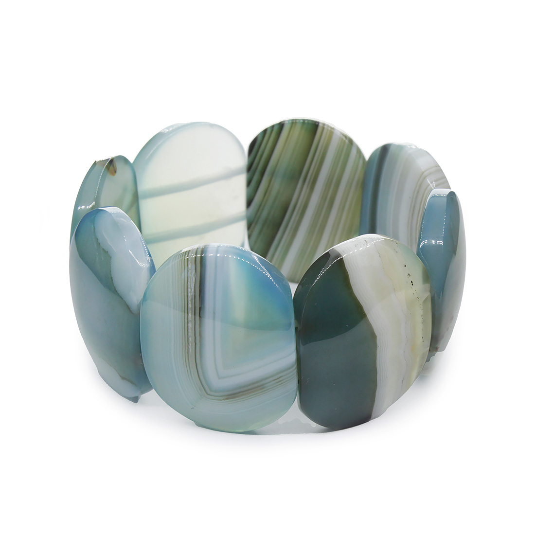 Аагат серо-голубой, браслет "Эшли", ширина 38мм
