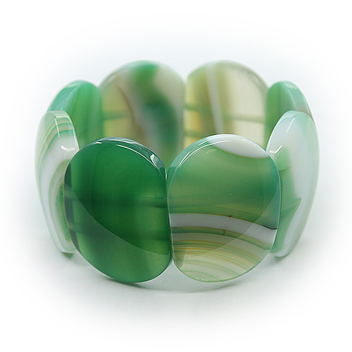 Браслет на резинке из крупного светло-зеленого агата - роскошное украшение для роскошных женщин. Длина изделия 21см, бусины 28х38мм.