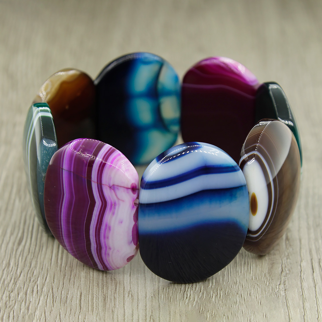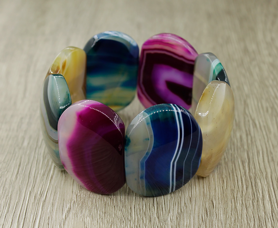 Браслет на резинке из крупного агата - роскошное украшение для роскошных женщин. Длина изделия 21см, бусины 28х38мм.