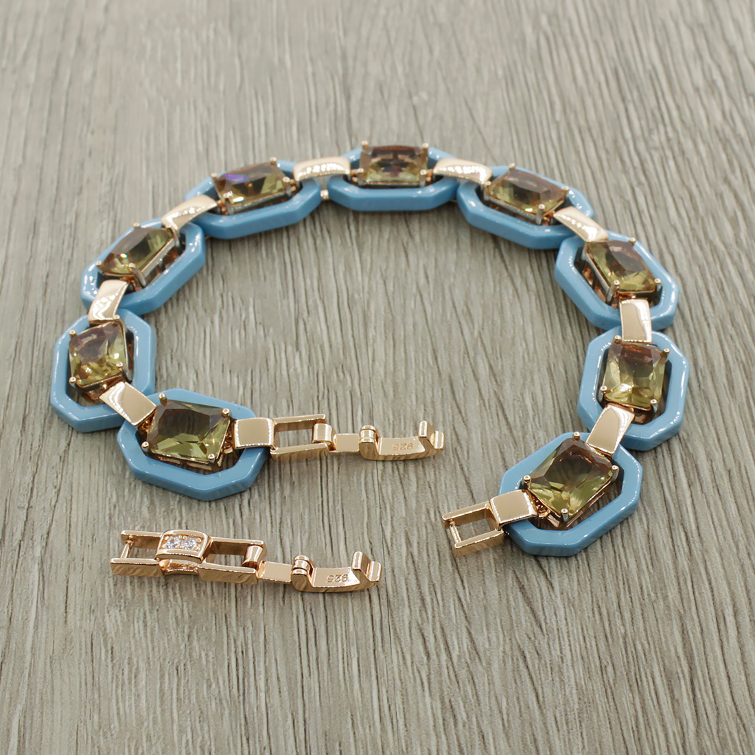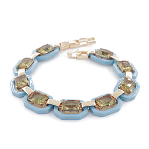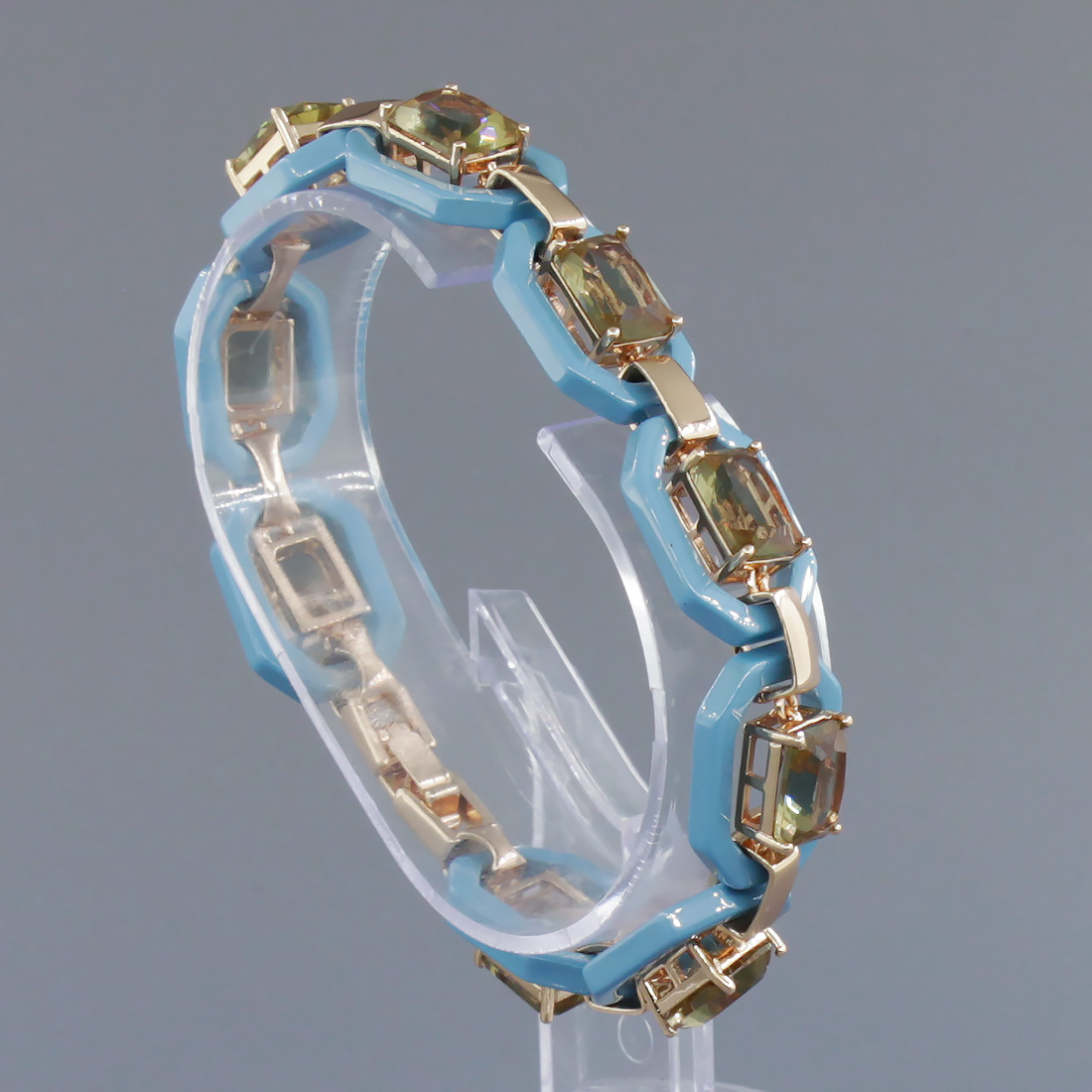 Браслет "Октагон" из голубой керамики с Султанитом, покрытие под золото, длина 18см