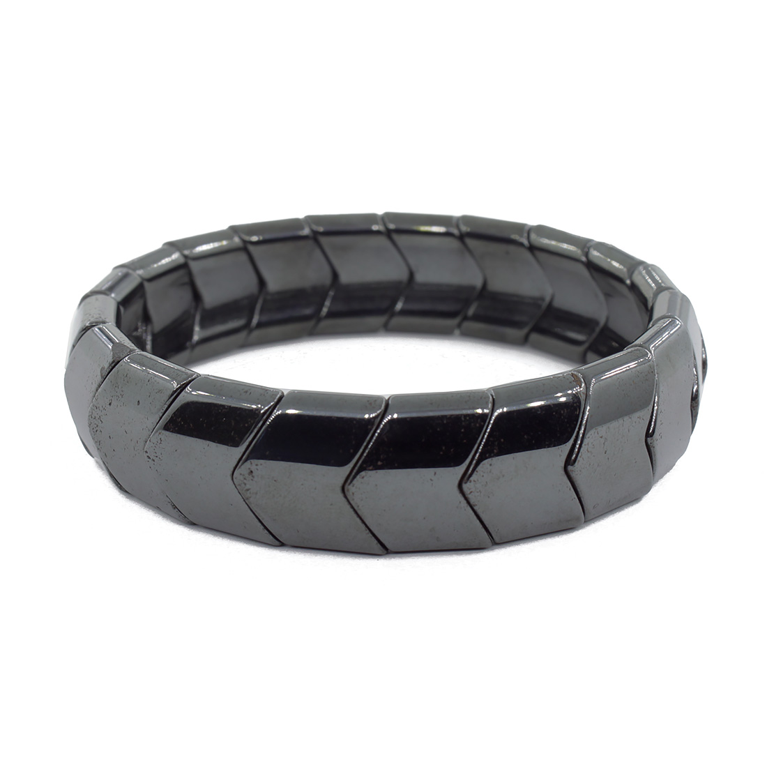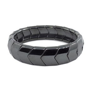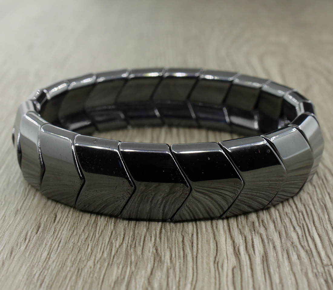 Браслет из натурального гематита на резинке. Рисунок на браслете в виде чешуйки змеи. Ширина браслета 16мм. Длина 20см.