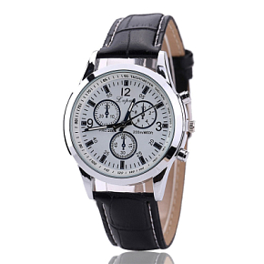 Строгие часы белого цвета "Lvpai" дополнят Ваш образ. Маленькие циферблаты - декоративные (нарисованы на большом). Диаметр часов 40мм. Толщина 10мм. Длина ремешка 24см.