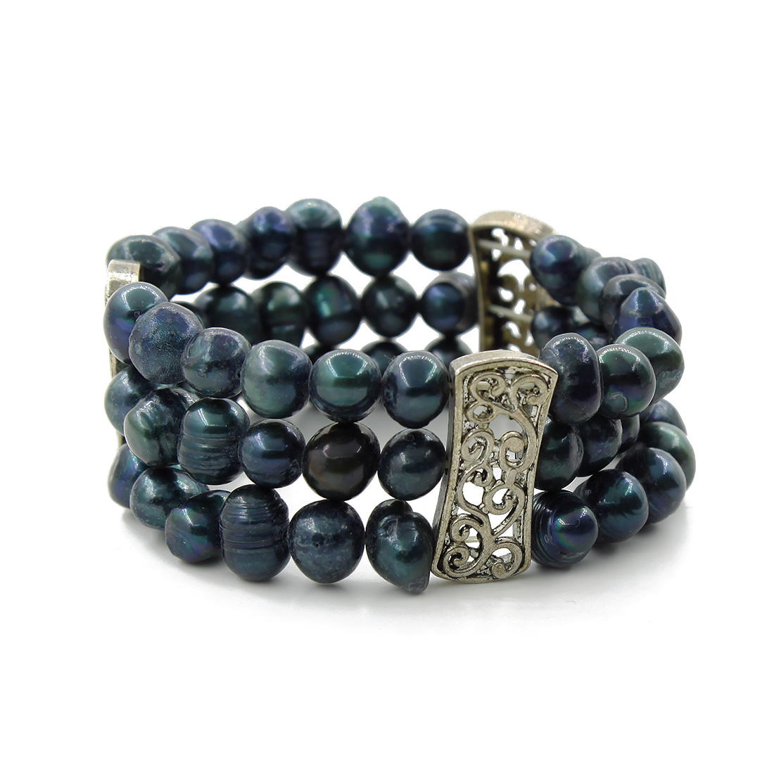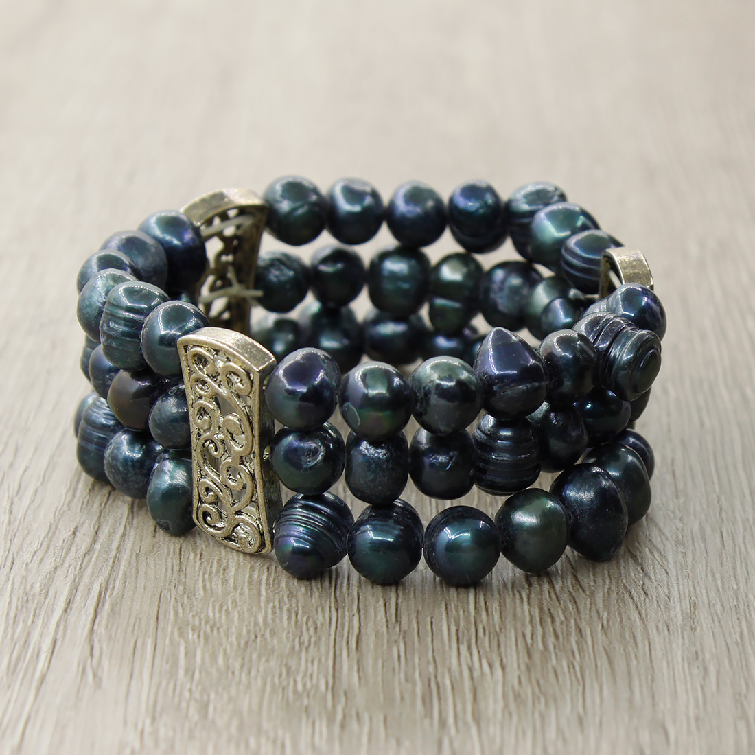 Неровные жемчужины будут смотреться гармонично со вставкам в восточном стиле. Размер браслета примерно19см.