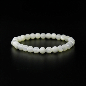 Этот браслет сделан из шариков натурального перламутра белого цвета. Браслет на резинке. Диаметр шарика 6мм. Длина браслета 17см.