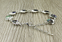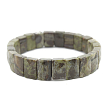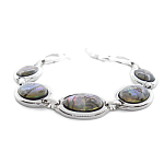 Оригинальный браслет со вставками из натурального гелиотиса в родированной оправе. Длина браслета 18-23см (регулируется с помощью удлинняющей цепочки). Размер элемента 13х18мм.