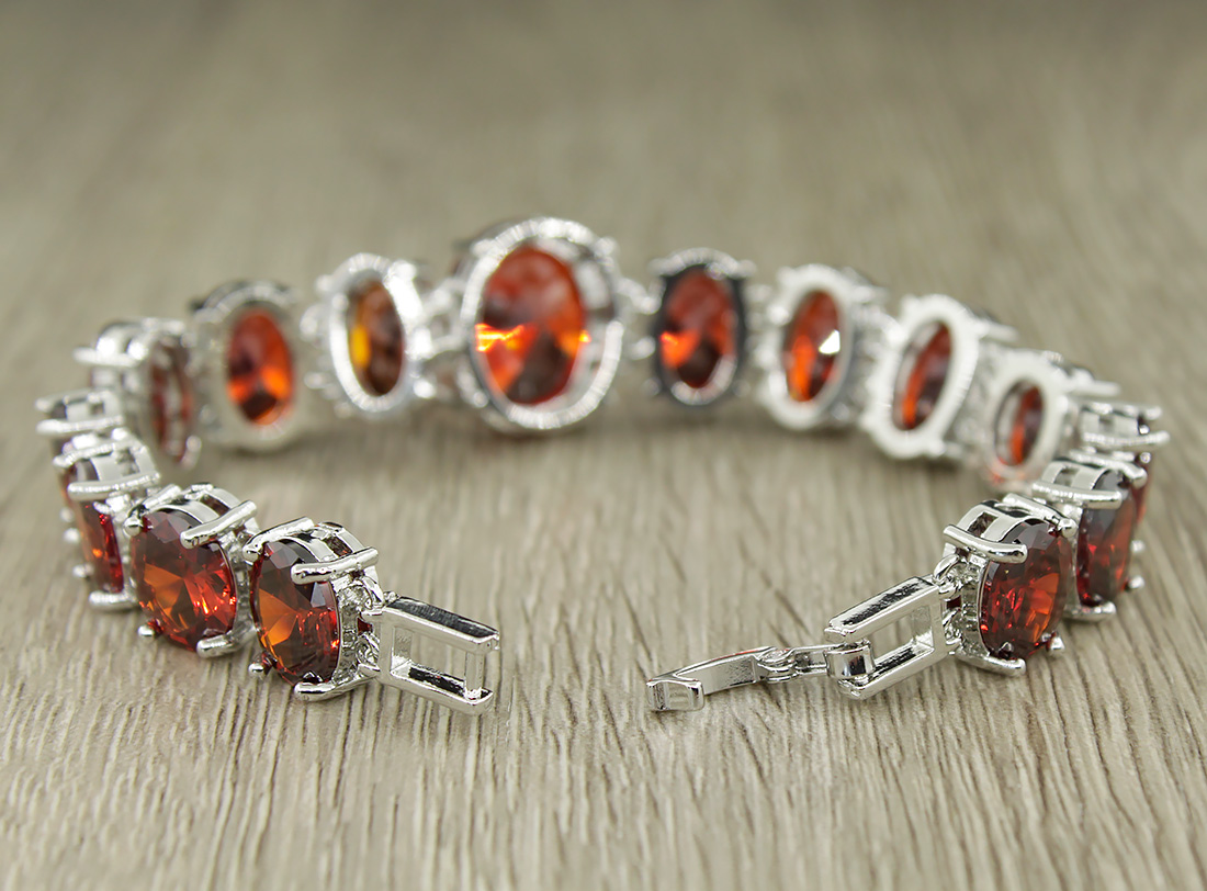 Невозможно яркий и стильный браслет с фианитами "гранат". Длина браслета 17,5 см. Размер большого камня 12х16мм, размер маленького камня 8х10мм. Находится на удаленном складе (отгрузка на 2 дня позже).