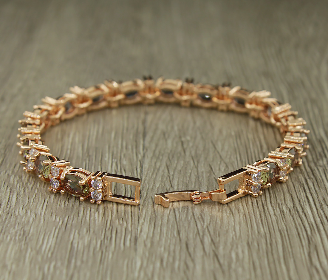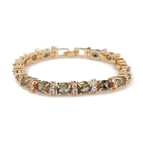 Стильный и изящный браслет с переливающимися султанитами и фианитами. Благодаря огранке, вставки будут искриться на Вашем запястье. Длина браслета 18 см. Размер вставок из султанита 5х6мм, размер фианитов около 3мм