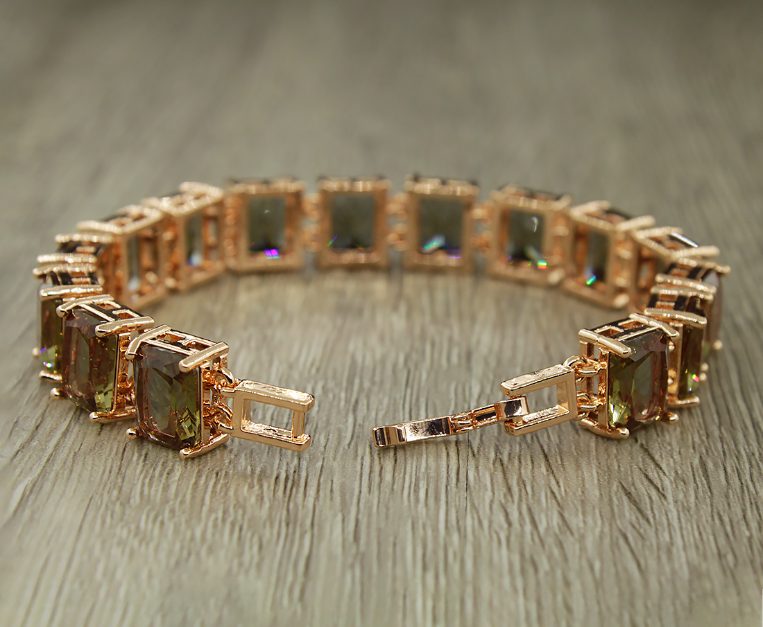 Стильный и изящный браслет с переливающимися султанитами. Благодаря огранке, вставки из султанита будут искриться на Вашем запястье. Длина браслета 18,5см. Размер вставок 8х10мм