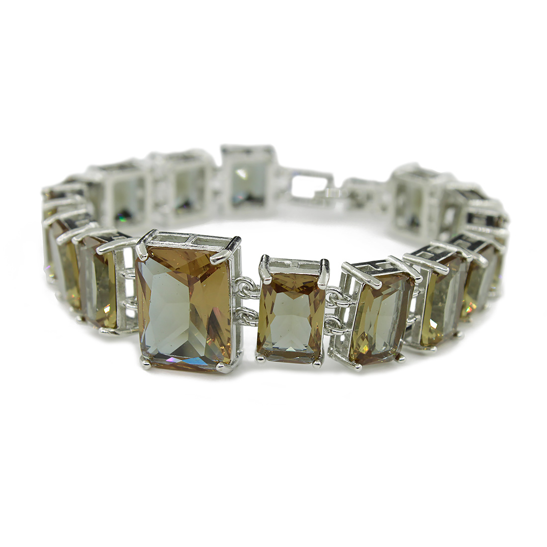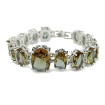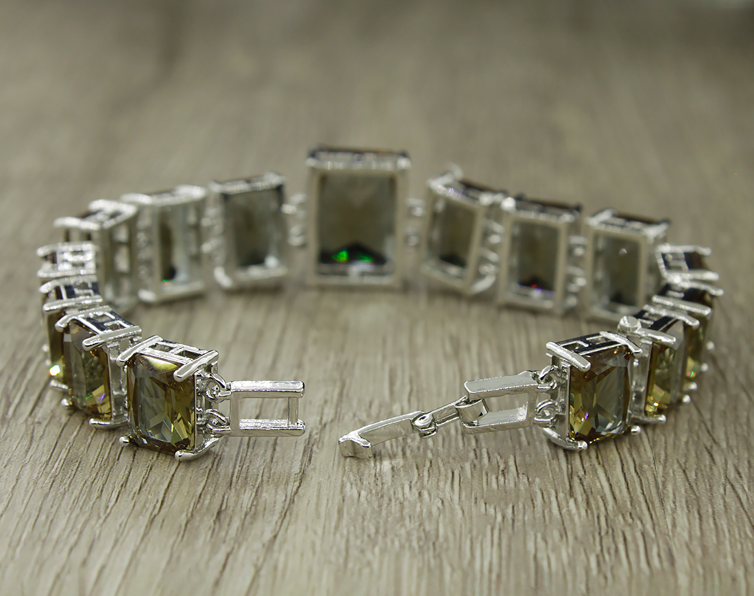 Стильный и изящный браслет с переливающимися султанитами. Благодаря огранке, вставки из султанита будут искриться на Вашем запястье. Длина браслета 18см. Размер большой вставки (по центру) 12х16мм, средних 8x12мм, малых 8x10мм.