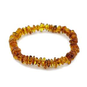 Браслет из мелкой гальки янтаря насыщенного оттенка. Особенно хорошо подойдет к Вашему повседневному образу. Средний размер бусин 4x8мм. Длина 18см.
