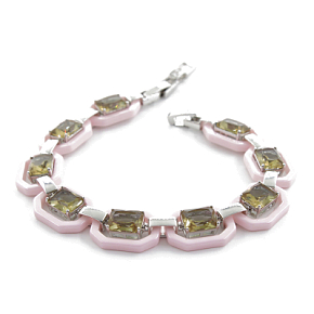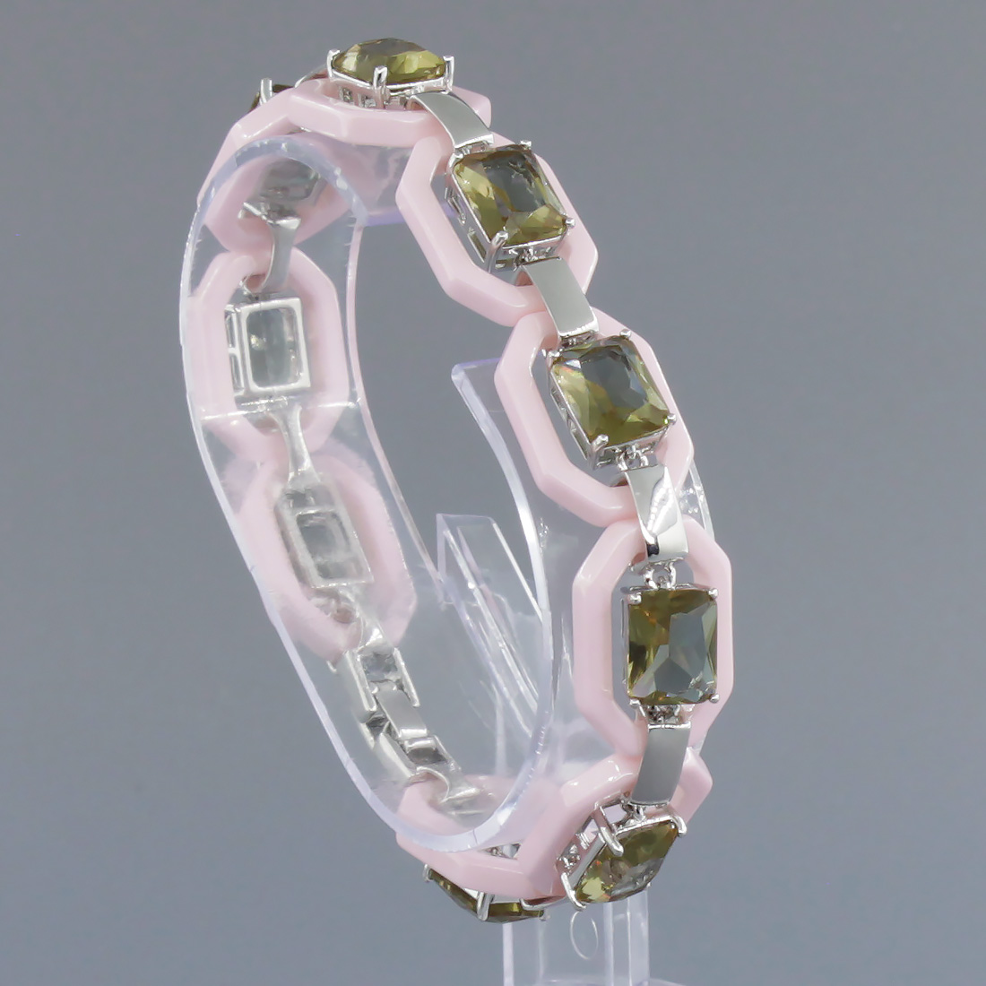 Браслет "Октагон" из розовой керамики с Султанитом покрытие светлый металл, длина 18см