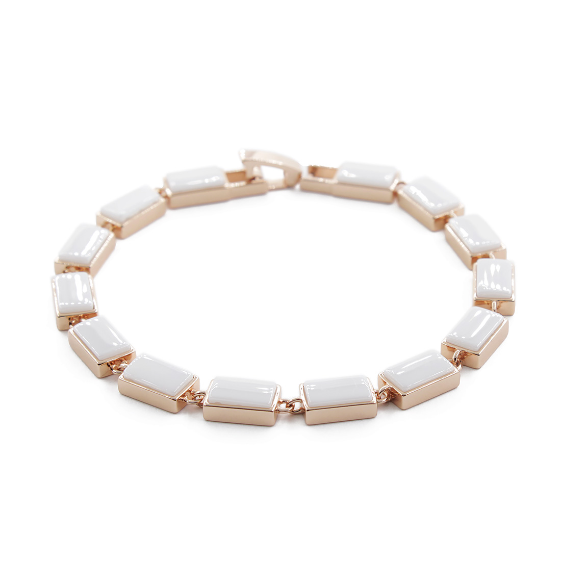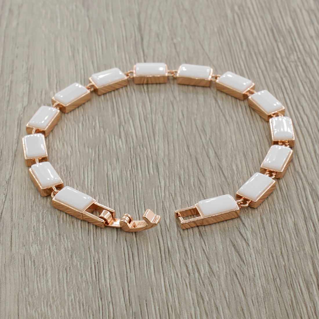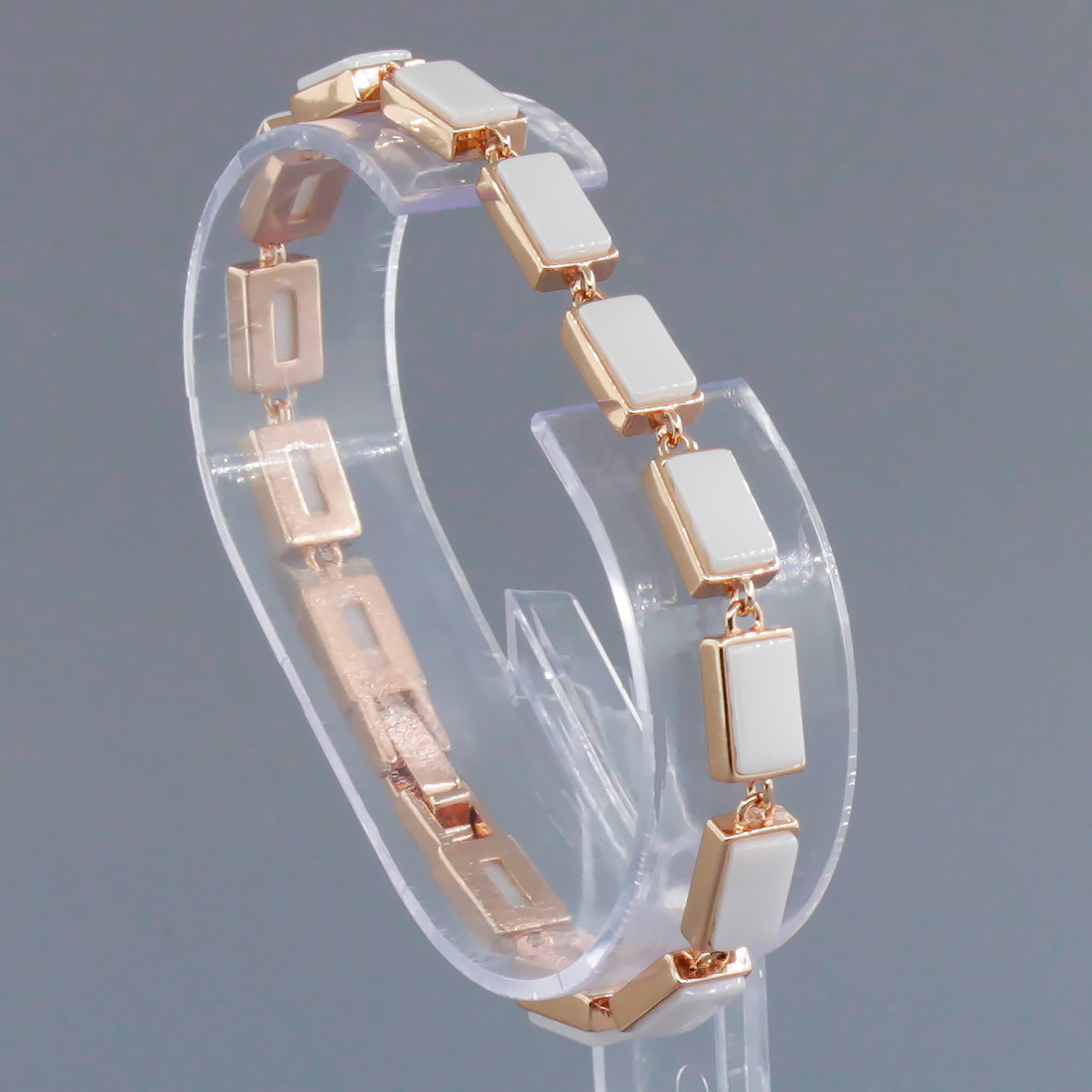 Браслет из ювелирного сплава "под золото" со вставками из натуральной керамики. Длина изделия 18,5см. Размер звена 10х6мм.