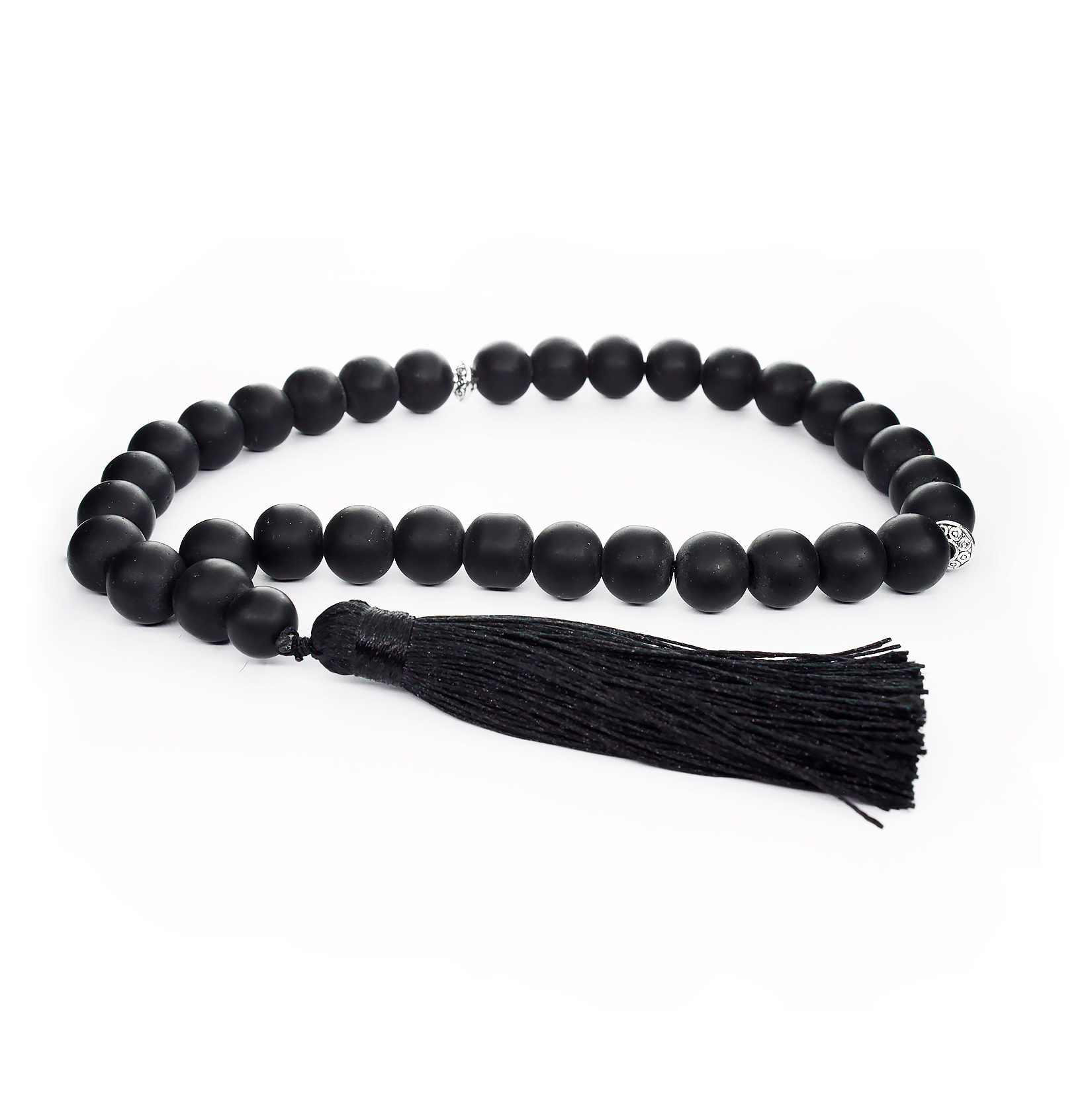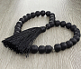 Четки из шунгита в строгом стиле, 33 бусины + 2 бусины в хвосте. Диаметр бусин 12мм.