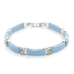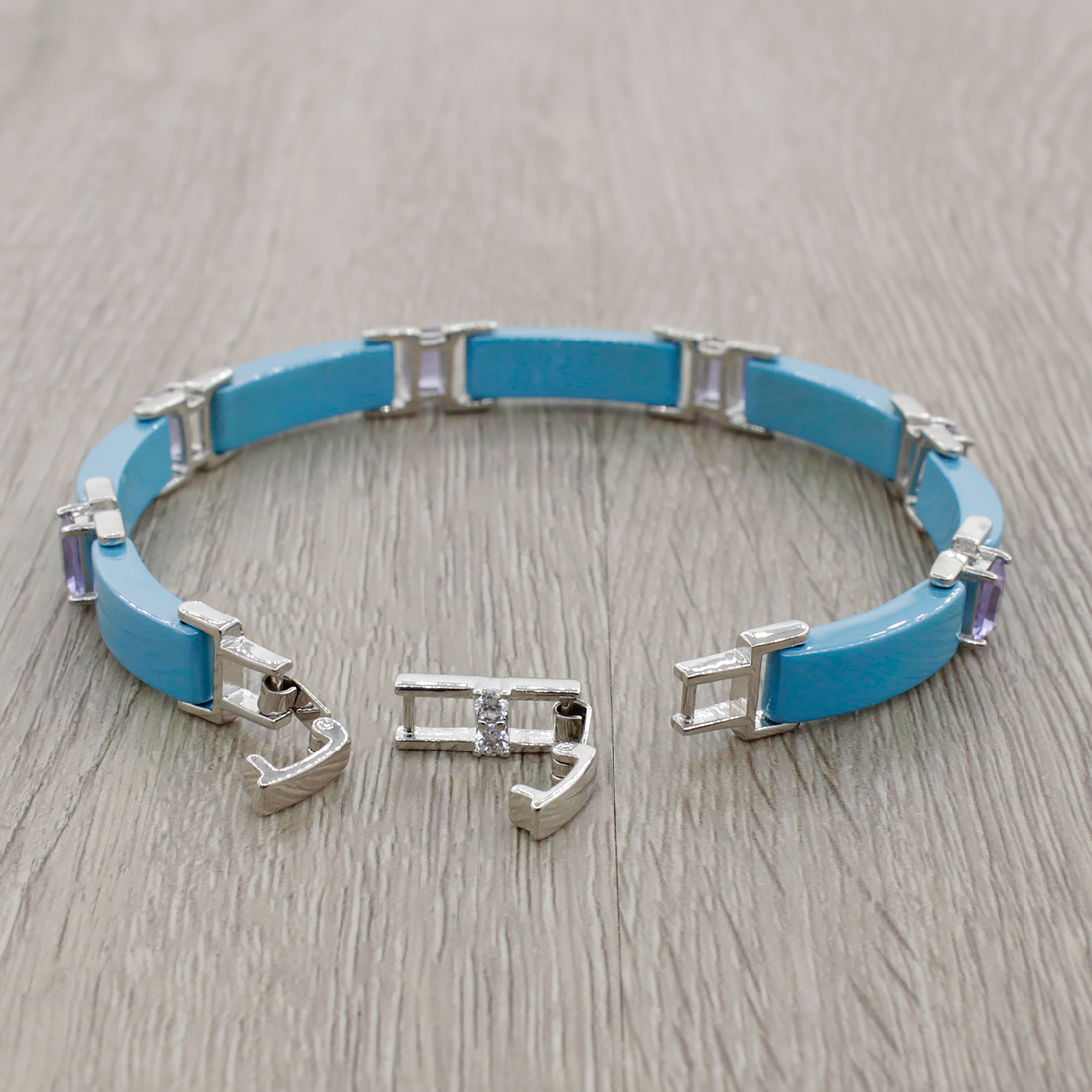 Браслет "Лилу" из голубой керамики с Султанитом покрытие светлый металл, длина 20см