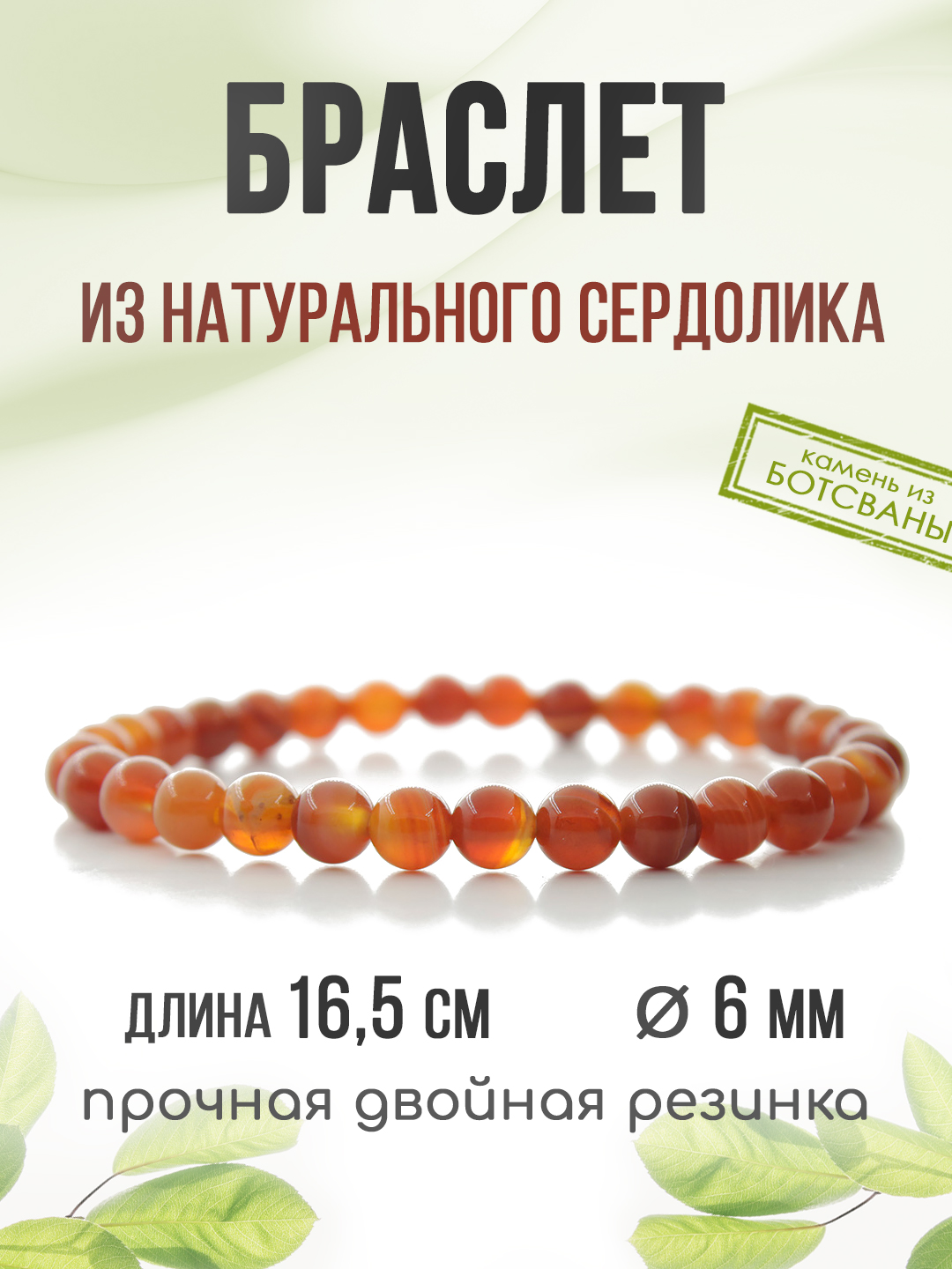 Сердолик красный 6мм, браслет "Классика" длина 17см