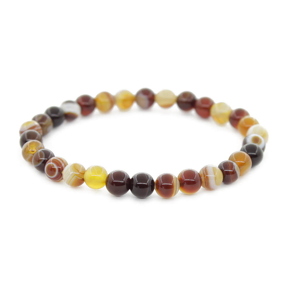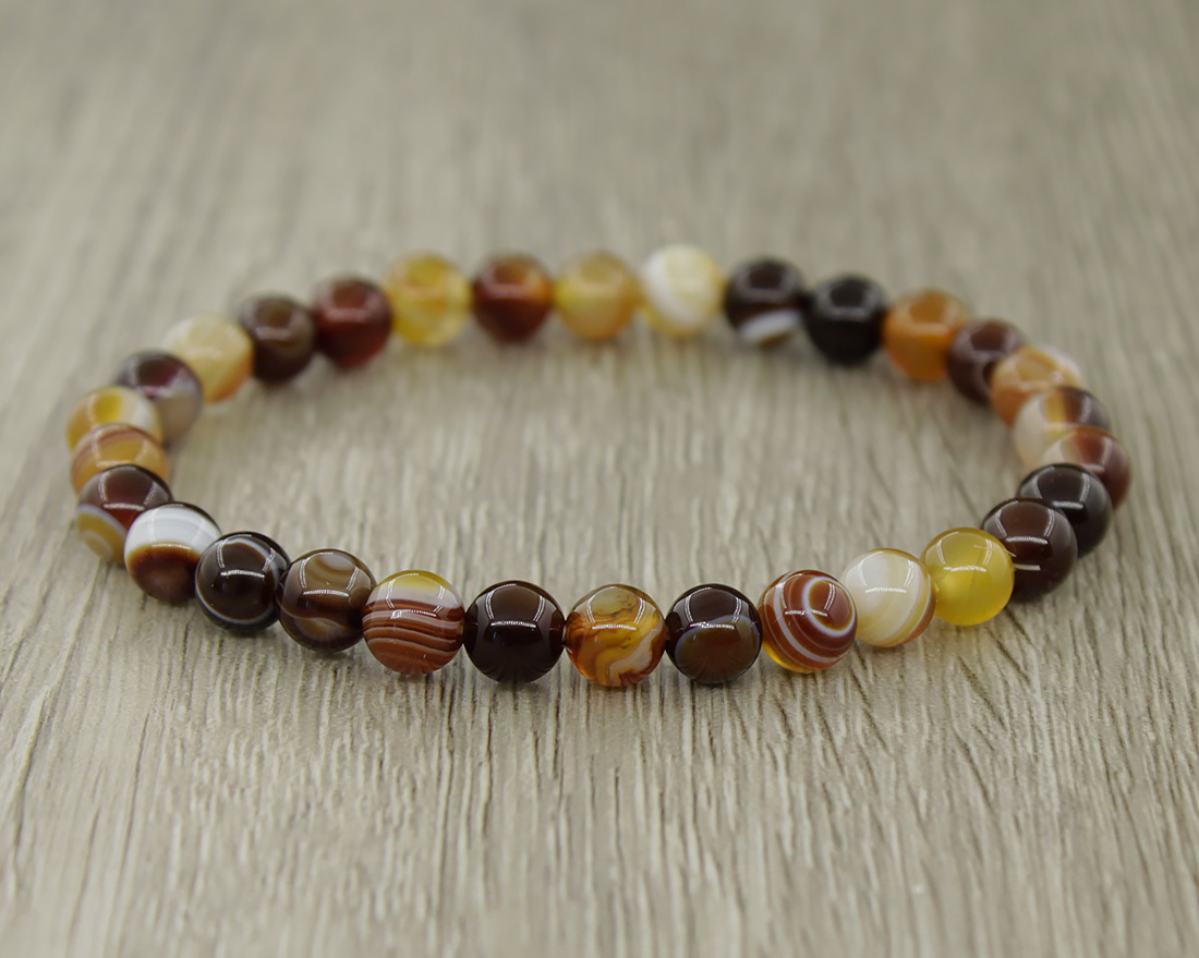 Агат черно-бежево-коричневый 6мм, браслет "Классика" длина 17см