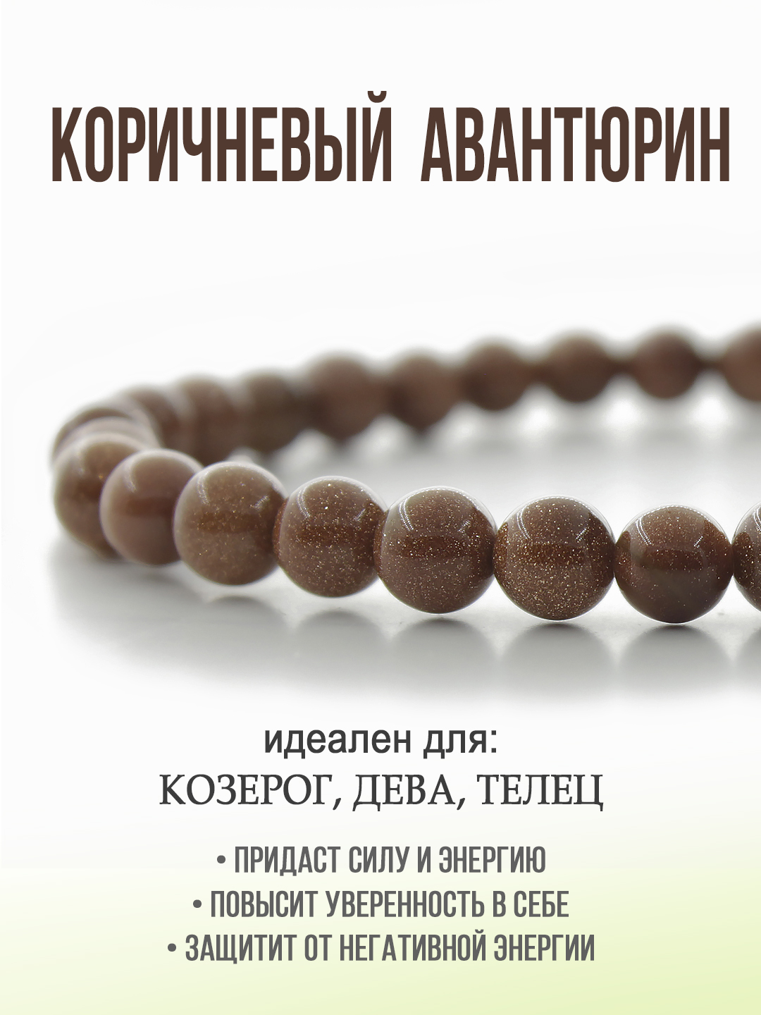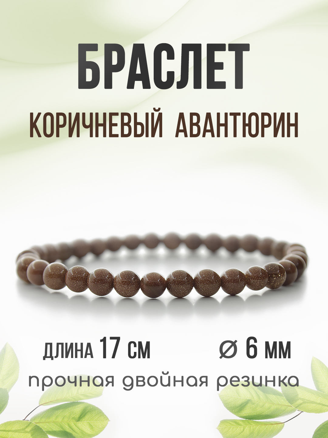 Авантюрин коричневый 6мм, браслет "Классика" длина 17см