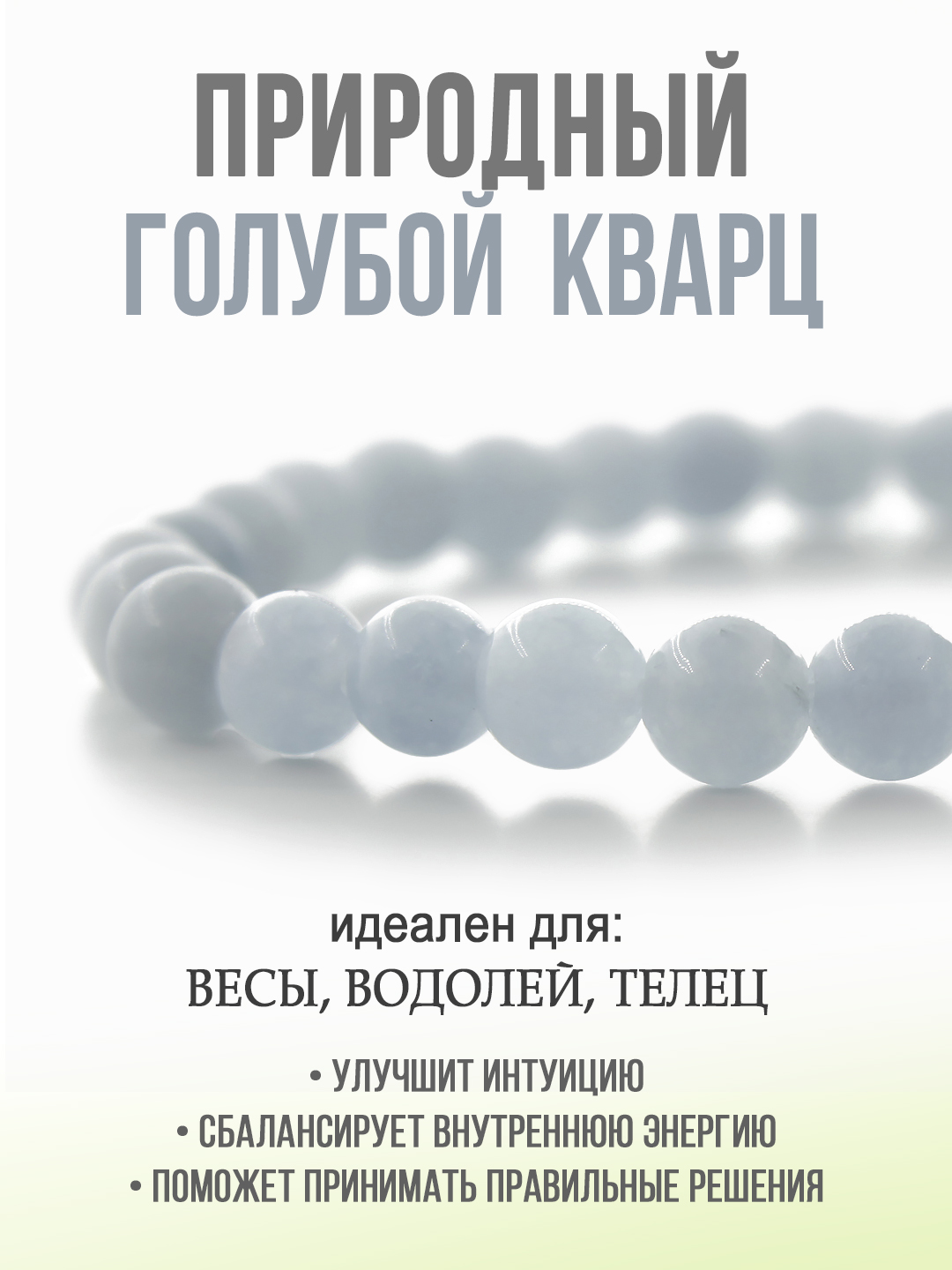 Кварц "аквамарин" 6мм, браслет "Классика" длина 18см