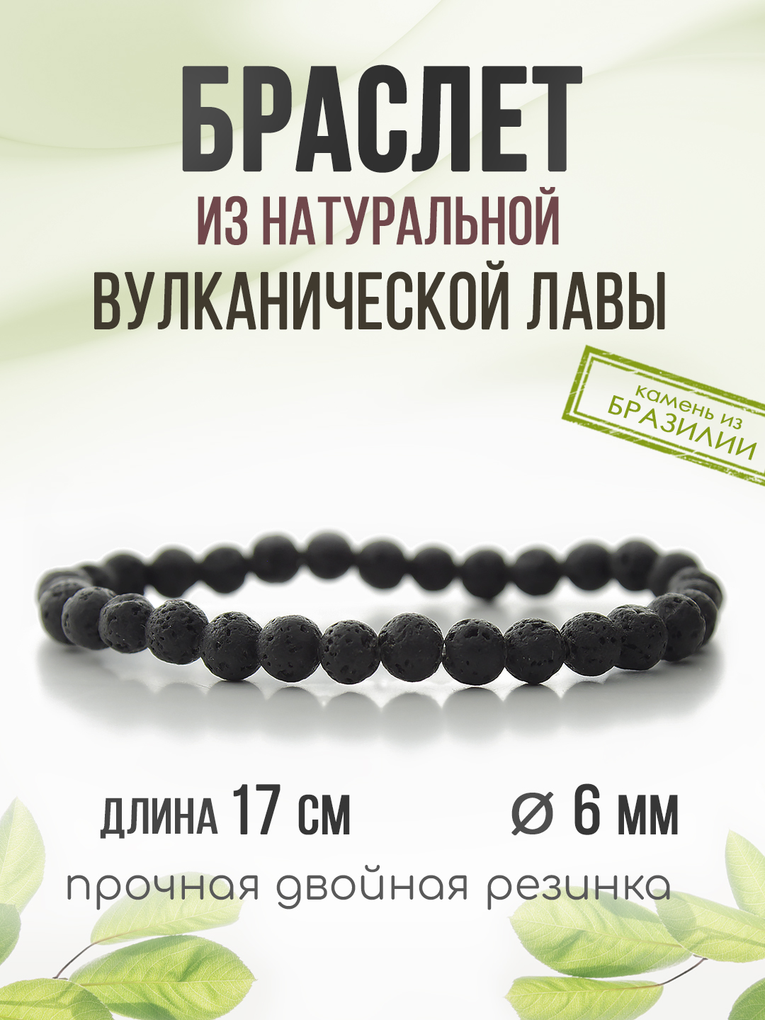 В браслете используется вулканическая лава. Браслет на резинке. Диаметр шарика 6мм. Длина украшения 17см.