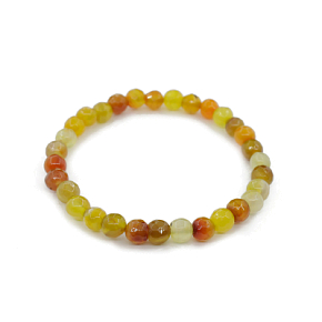 Изящный браслет из граненых шариков желто-оранжевого агата. Бусинки нанизаны на прочную резинку, что позволяет с комфортом надевать и снимать украшение. Диаметр шарика 6мм. Длина 18см