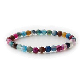 Тонкий браслет из граненых шариков натурального разноцветного агата. Прочная резиновая нить позволяет с комфортом надевать и снимать украшение. Диаметр бусины 6мм. Длина 18см.