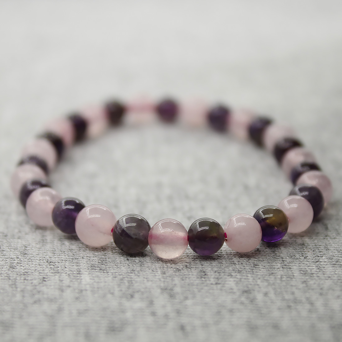 Браслет "Классика" 6мм розовый кварц и аметист 16см