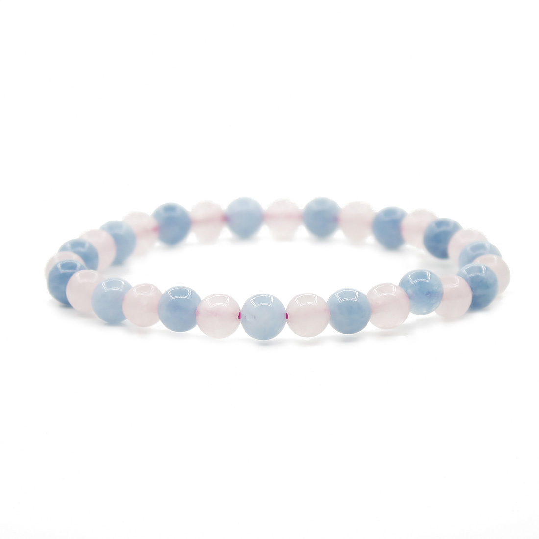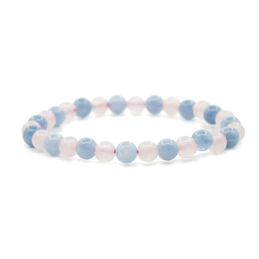 Кварц розовый + кварц "аквамарин" 6мм, браслет "Классика" длина 17см