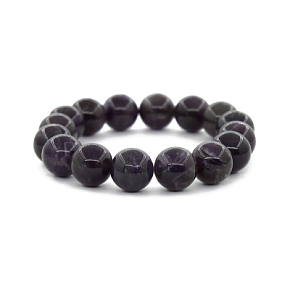 Браслет выполнен из натурального тёмного, почти чёрного, аметиста на резинке. Диаметр шарика 12мм. Длина браслета 16см.