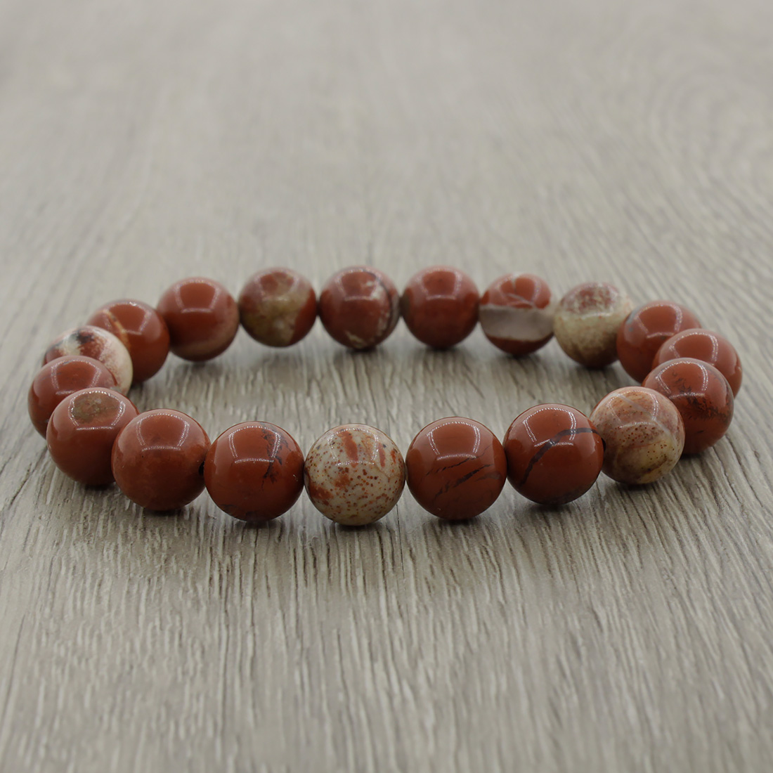 Яшма красная с бежевым 10мм, браслет "Классика" длина 16см