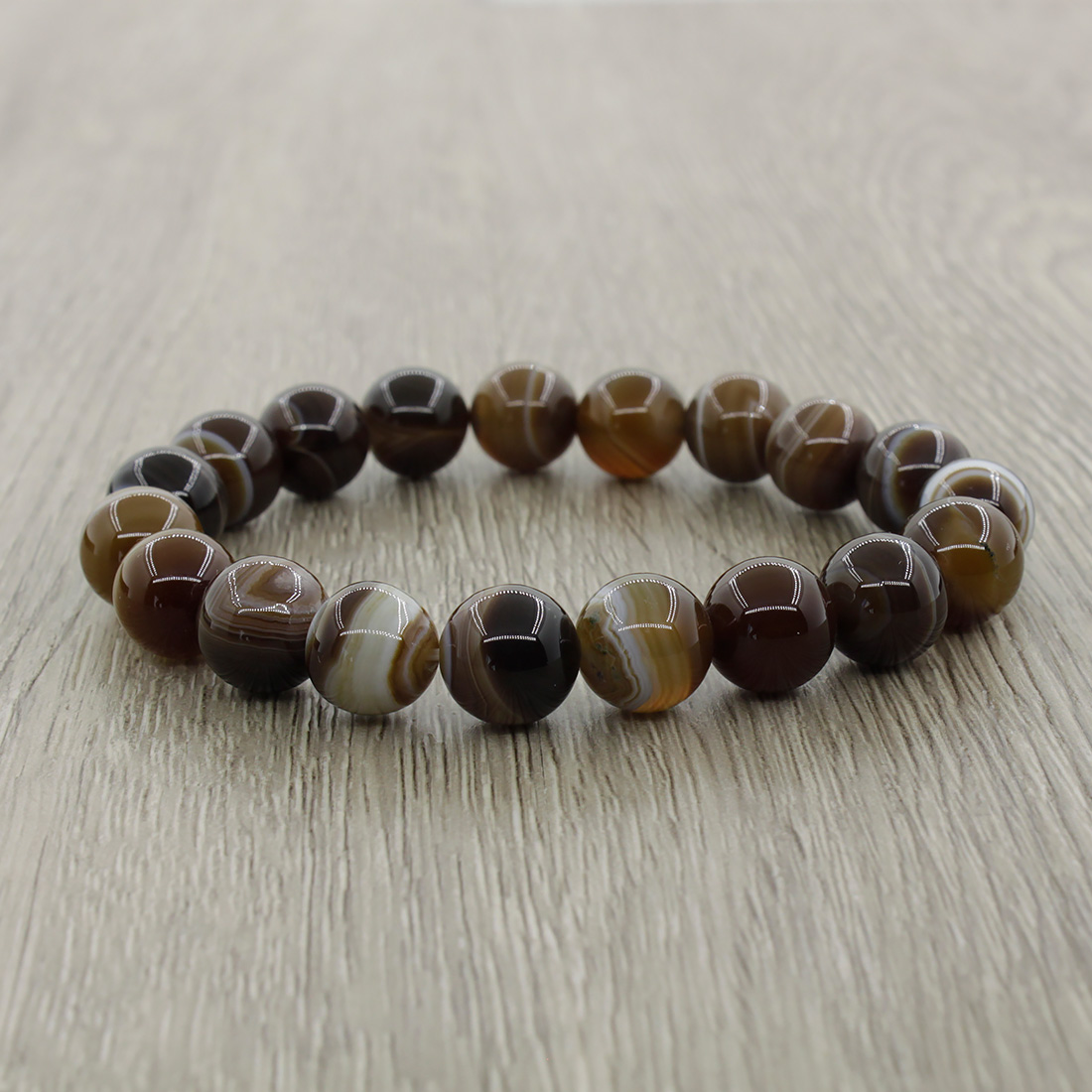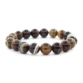 Агат коричнево-бежевый 10мм, браслет "Классика" длина 17см