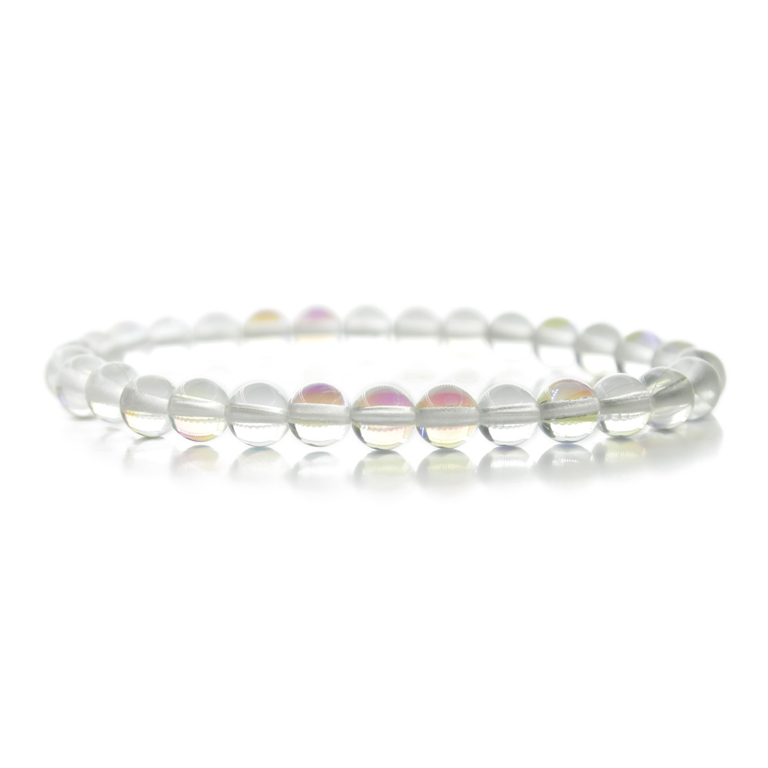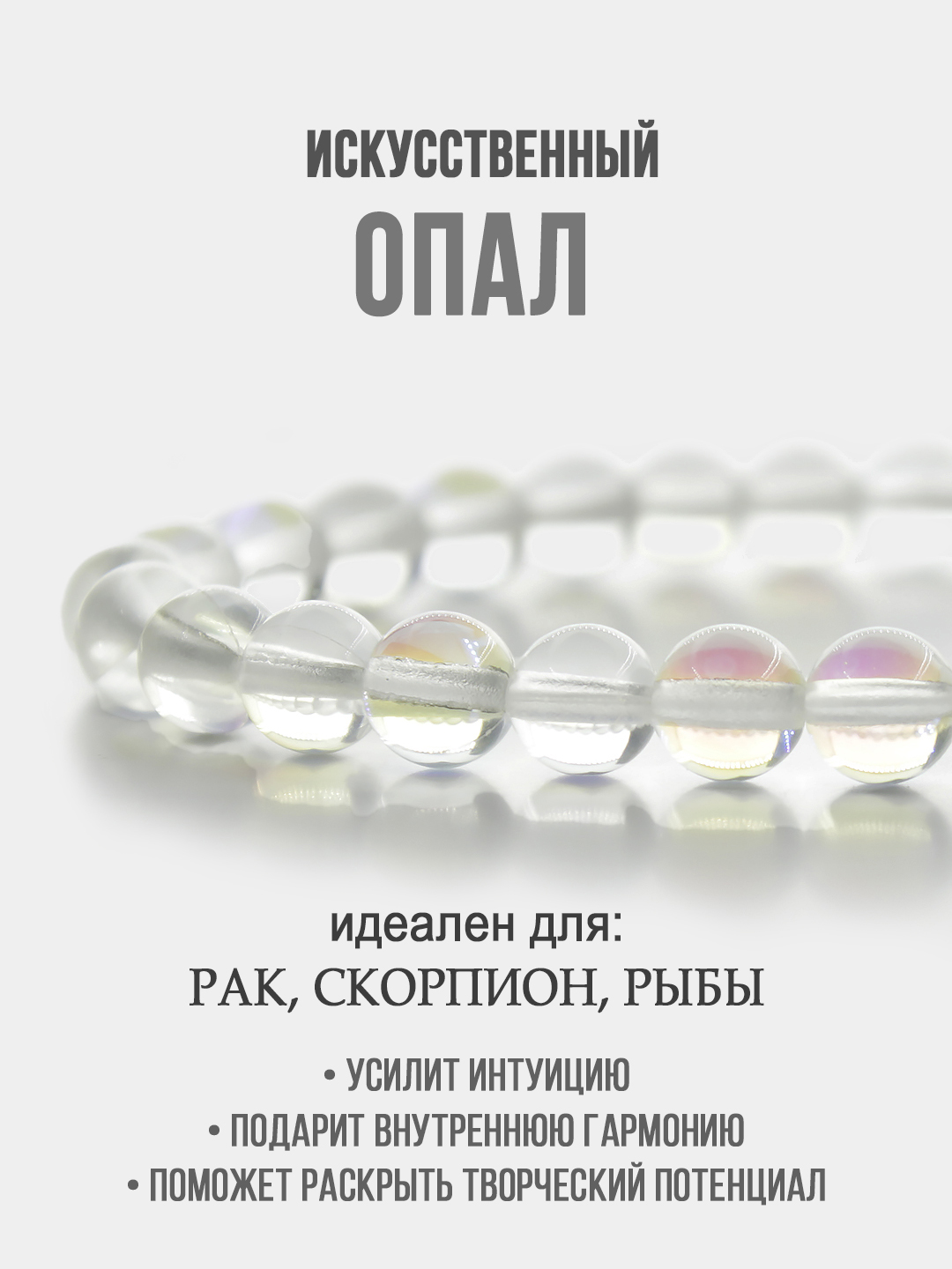 Опал белый (имитация) 6мм, браслет "Классика" длина 17см